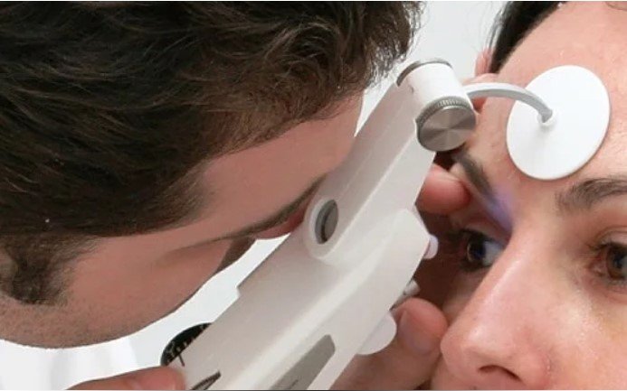 O TONÔMETRO é usado para fazer diversas medidas em horários diferentes (mini curva tensional) de um só dia. O médico posiciona um pequeno aparelho chamado TONÔMETRO diretamente no globo ocular do paciente. O aparelho é encostado no olho para medir a pressão ocular.
